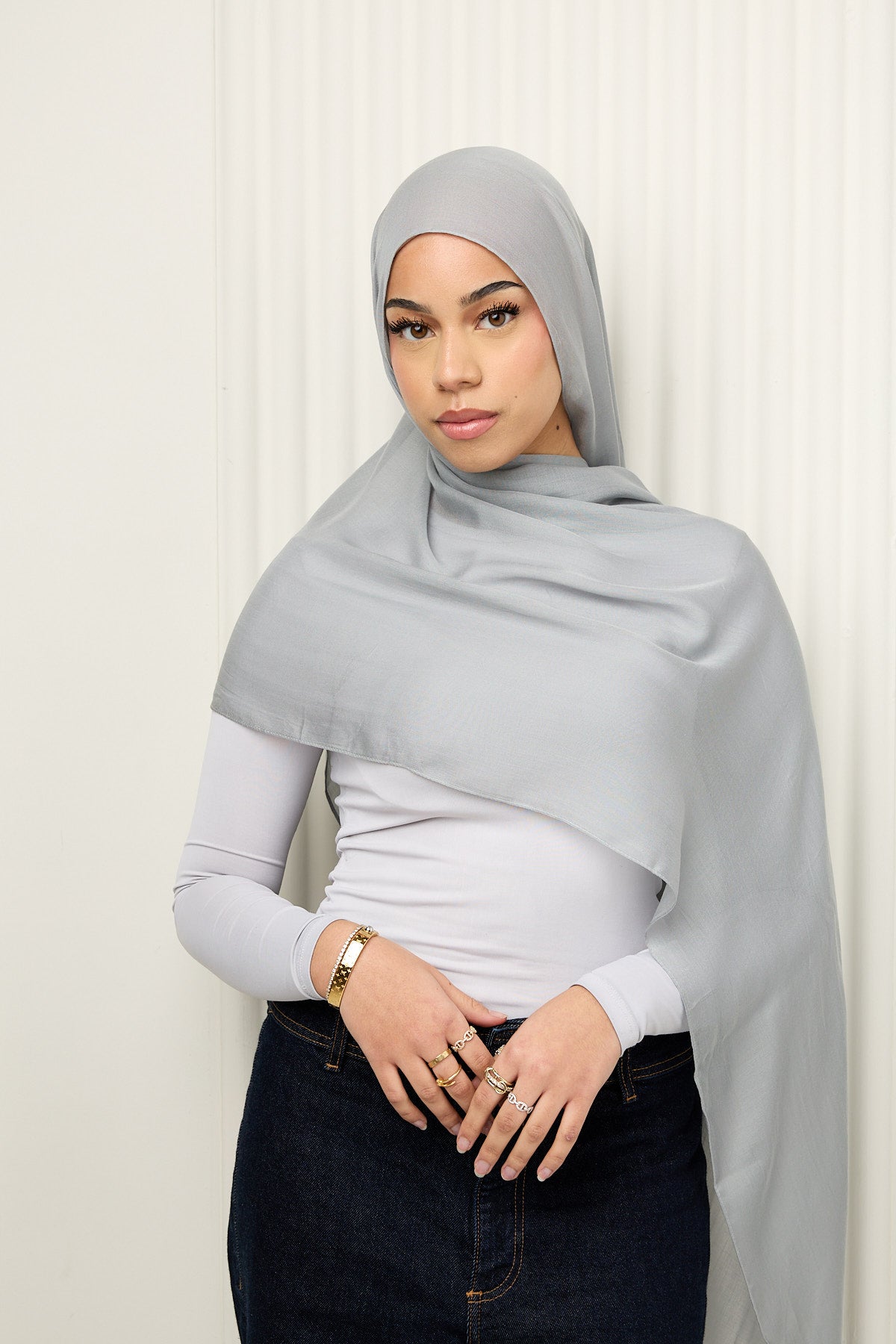 Premium Modal Hijab in Silver Mist