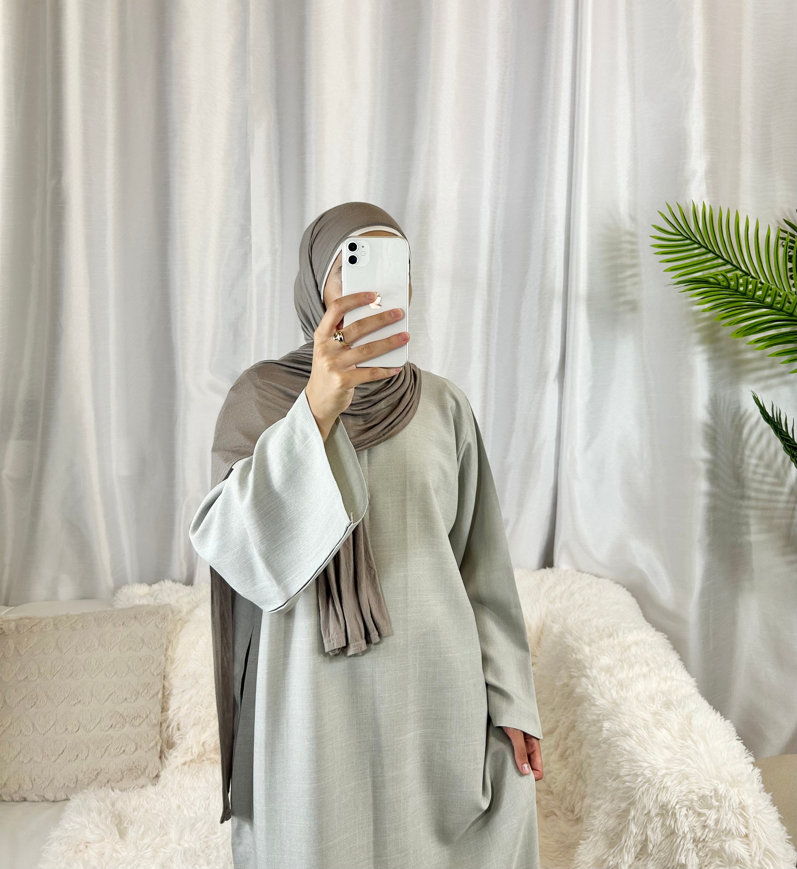 Experience effortless elegance with our Lina Abaya. Crafted from lightweight linen, it features a round neck, deep, roomy pockets, and a loose fit for added comfort. Enjoy timeless styling with this modern and versatile abaya.