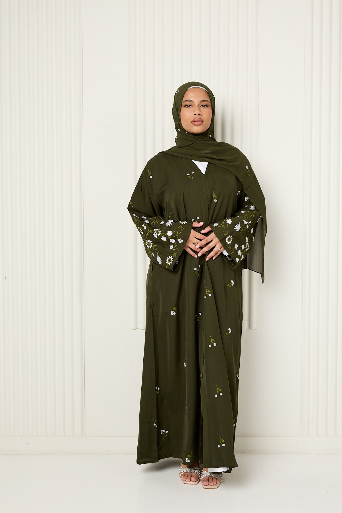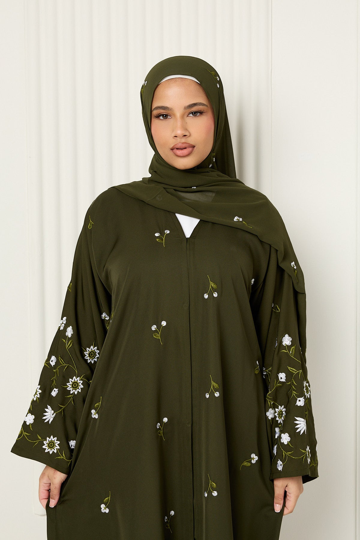 Arwa Open Abaya in Olive Green
